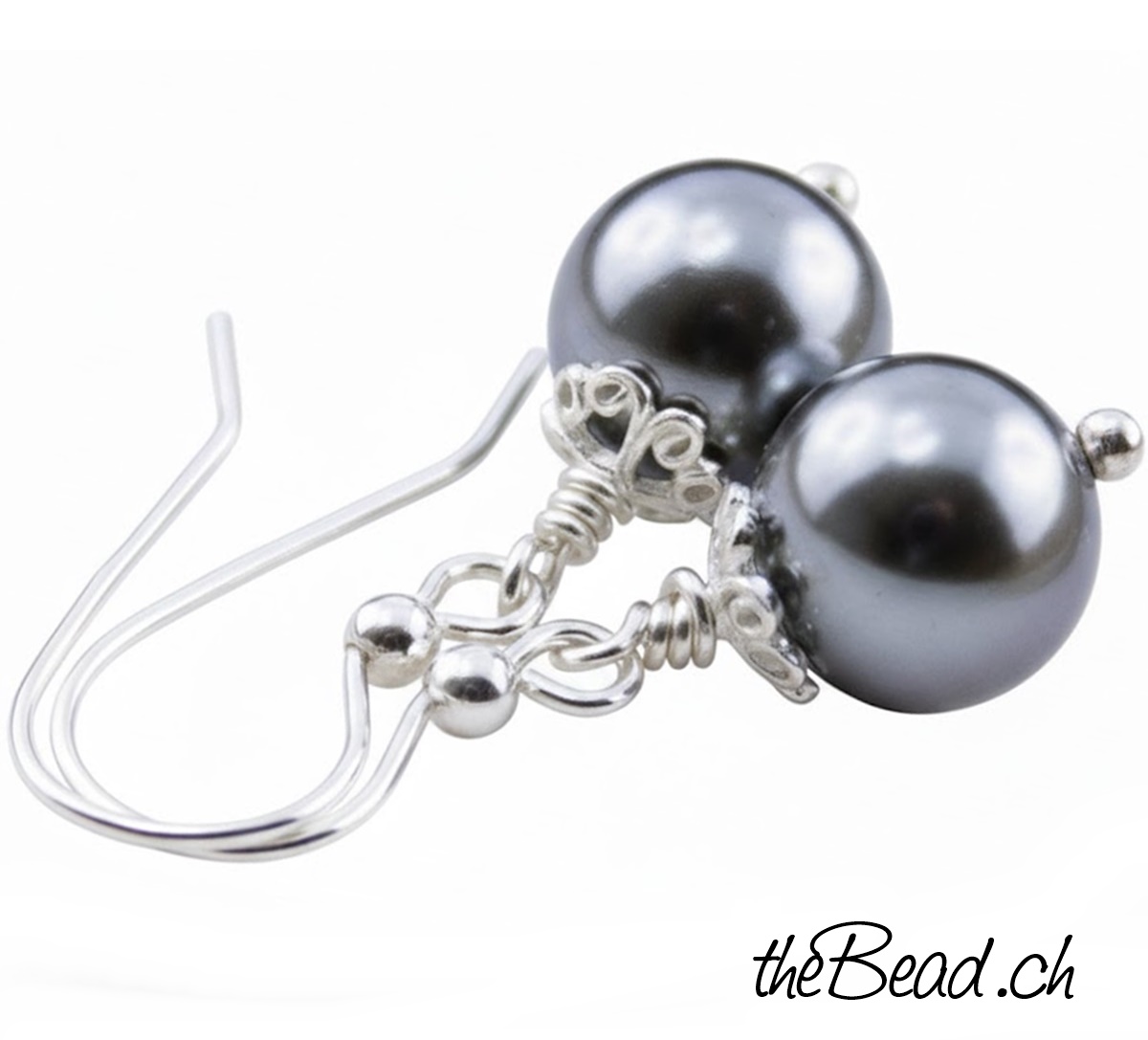 Schöne Ohrhänger mit dunkelgrauen Muschelkern Kugeln Material: Silber 925 Sterling, Muschelkern Grösse: die Kugeln haben einen Durchmesser von 10 mm