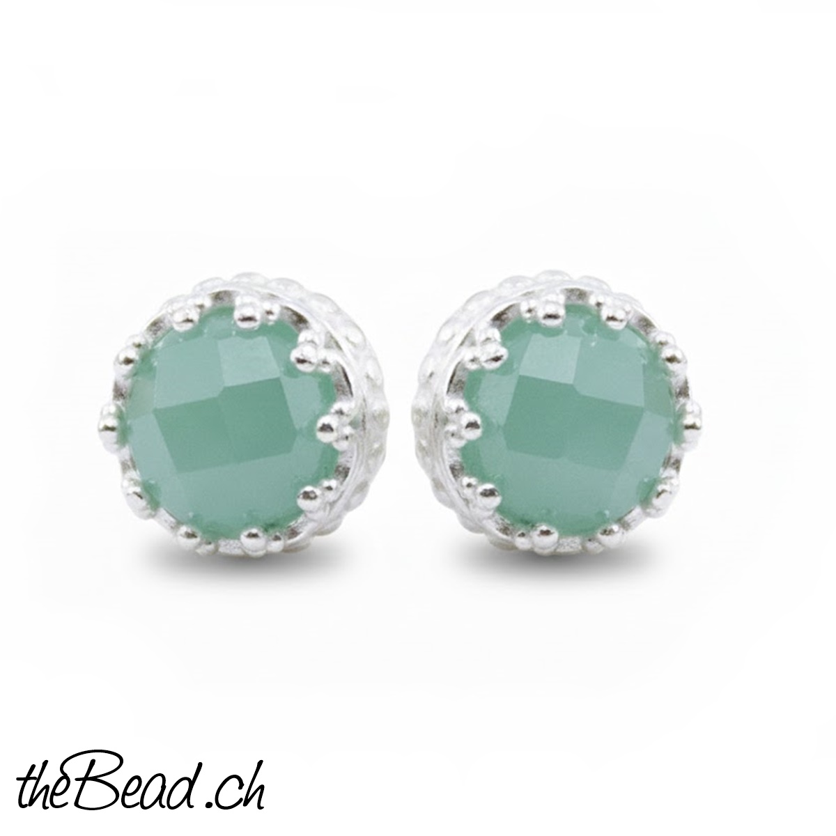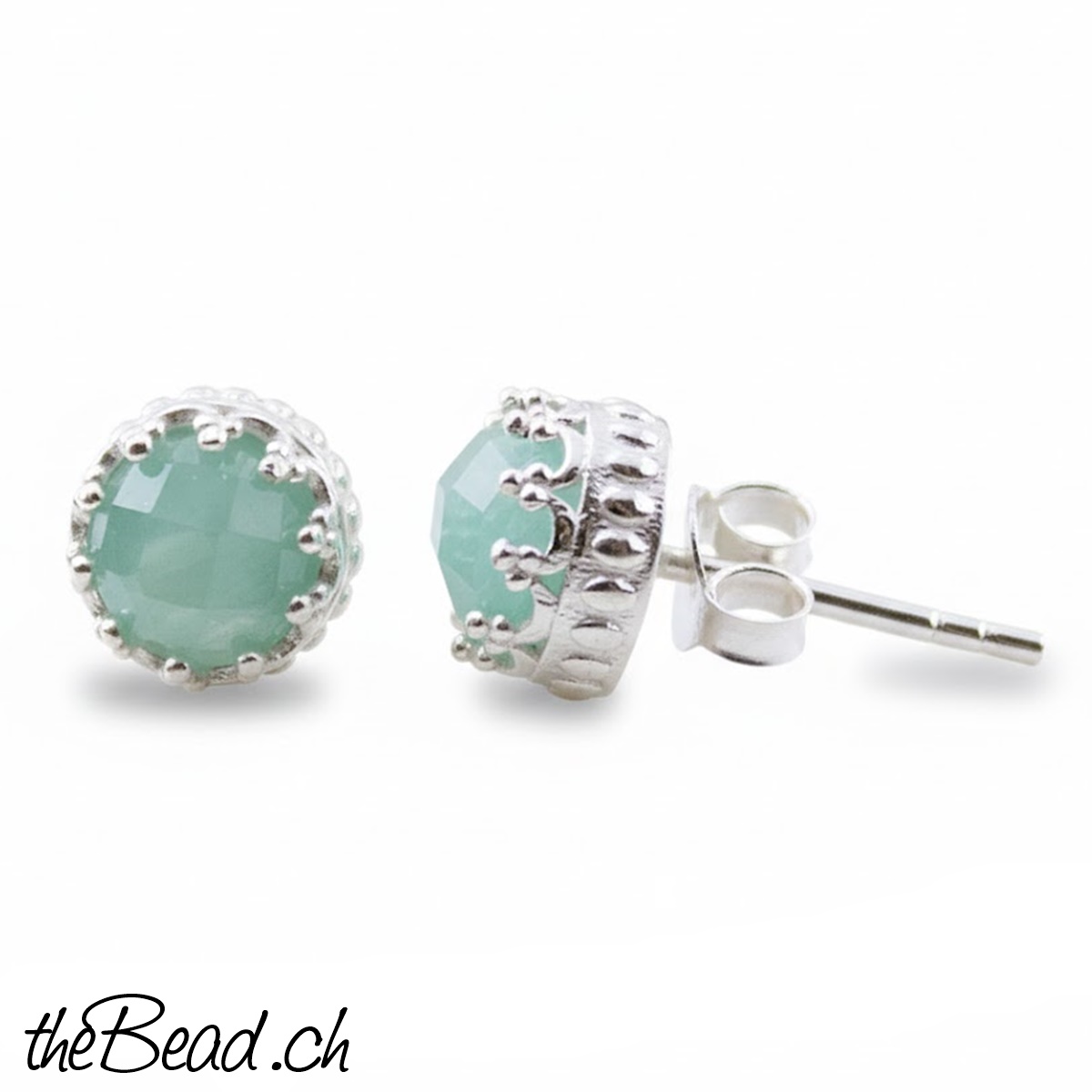 Die Amazonit Ohrstecker sind facettiert (geschliffen) und in kleinen KRÖNCHEN eingefasst.