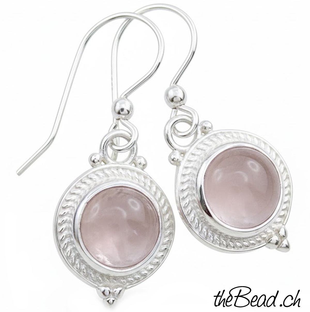 Die Ohrhänger sind wunderbar aus Silber & Rosenquarz gearbeitet