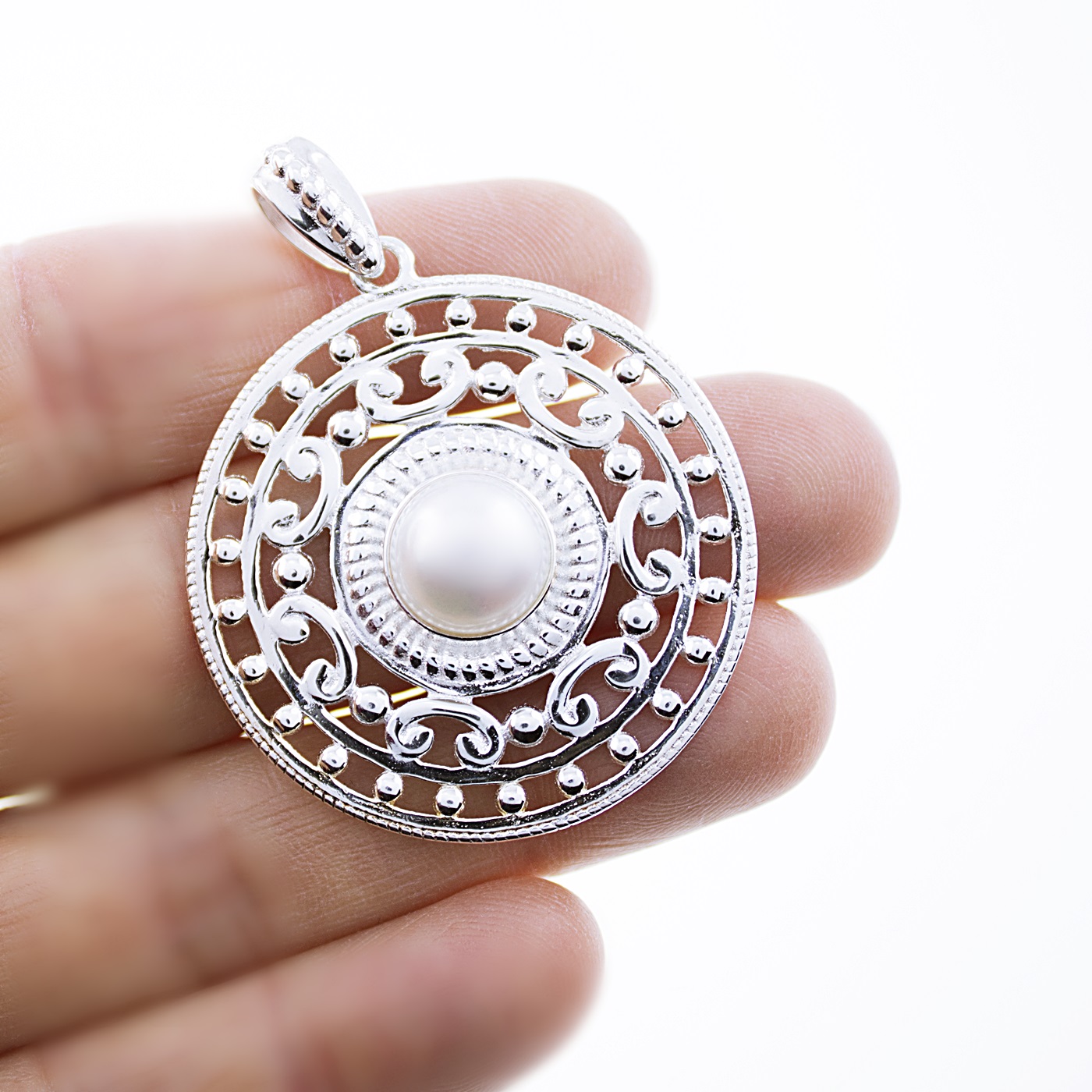 Masse: 37 mm im Durchmesser Material: Silber 925 Sterling, Süsswasserperle Die passende Halskette finden Sie HIER