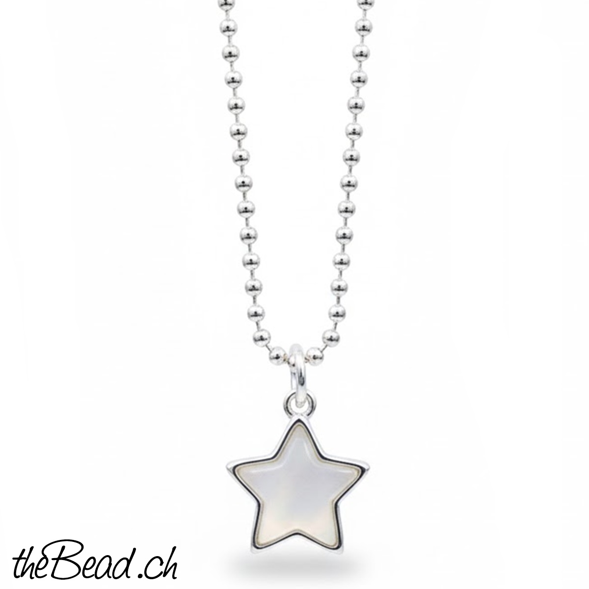 Halskette mit Stern Anhänger, der weisse Mondstein ist ebenfalls in Silber eingefasst.
