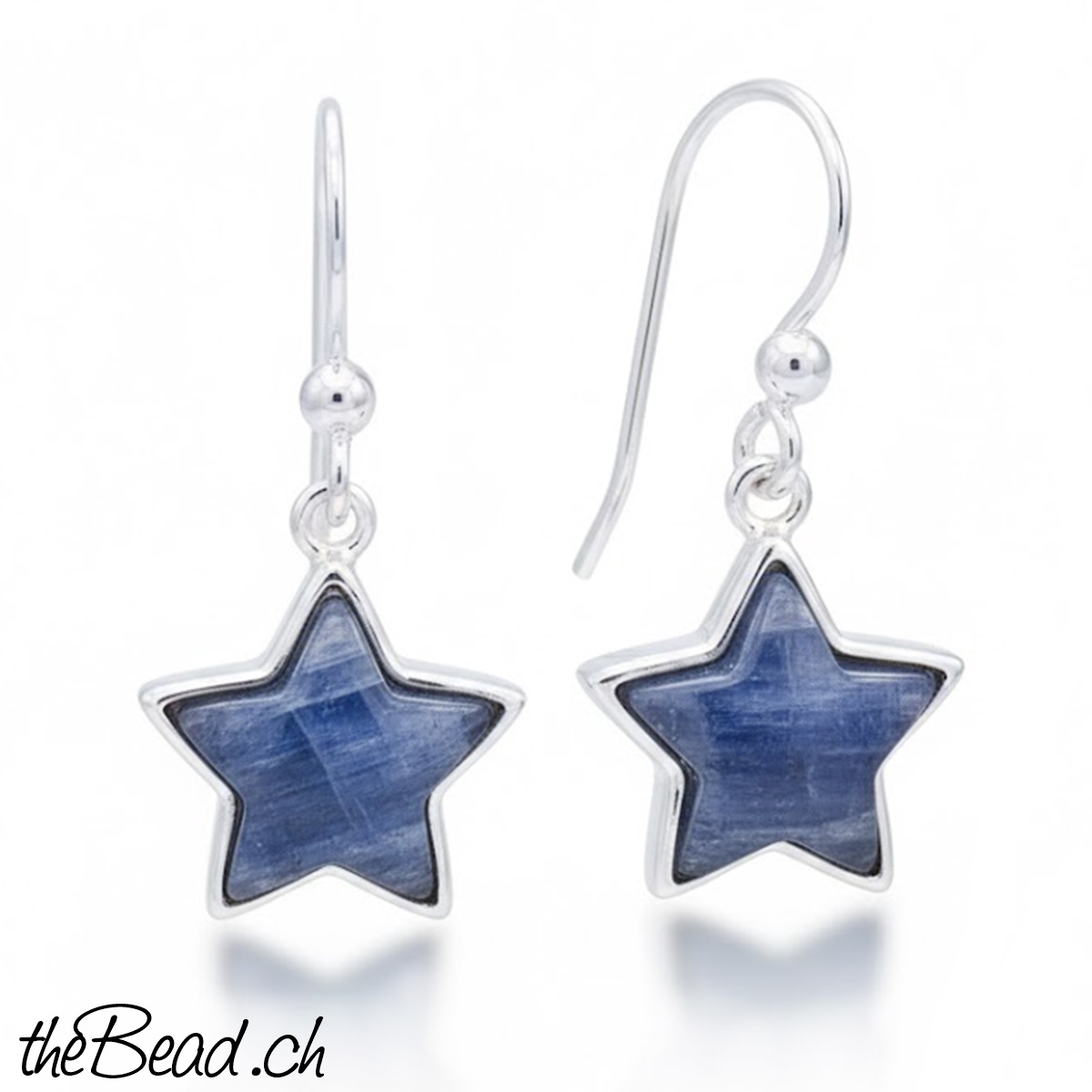 Die Ohrhänger bestehen aus Silber, die Stern Kyanite sind ebenfalls in Silber eingefasst. Material: Silber 925 Sterling, Kyanit Grösse: 10 x 10 mm Das passende Armband finden Sie HIER (solange Vorrat)