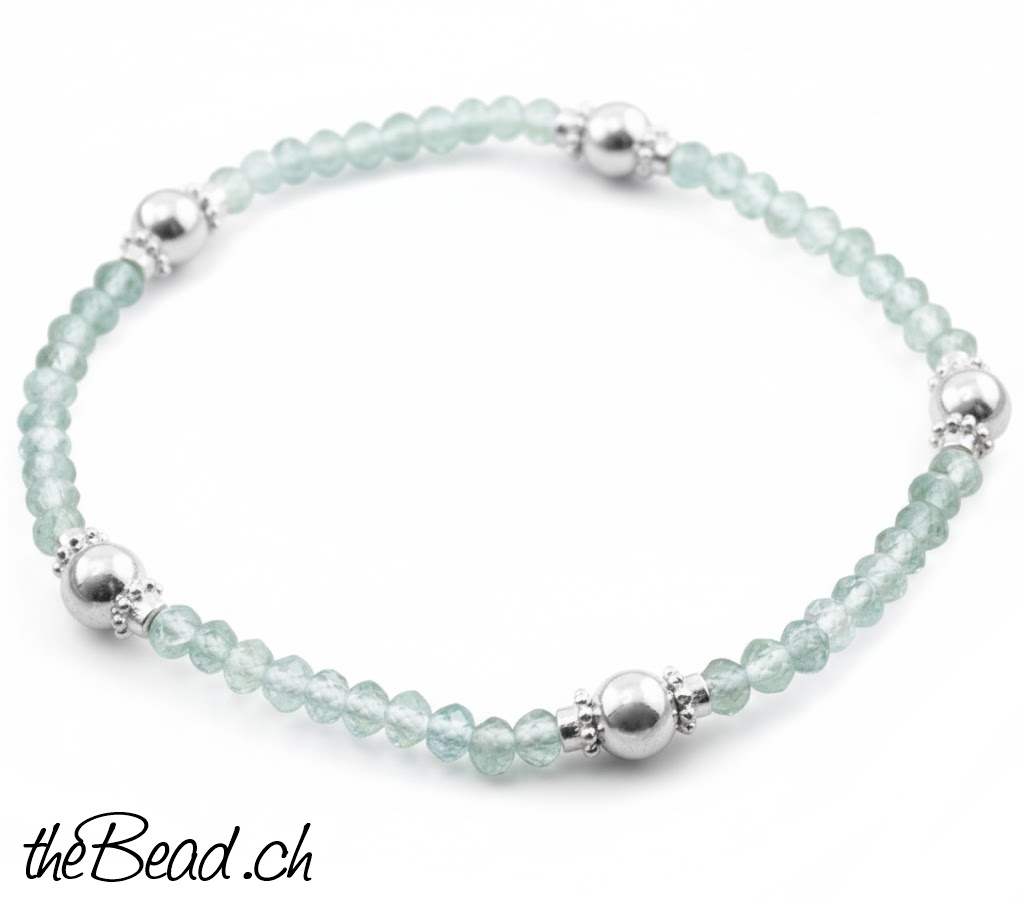 Armband mit facettierten Apatit- und Silberperlen