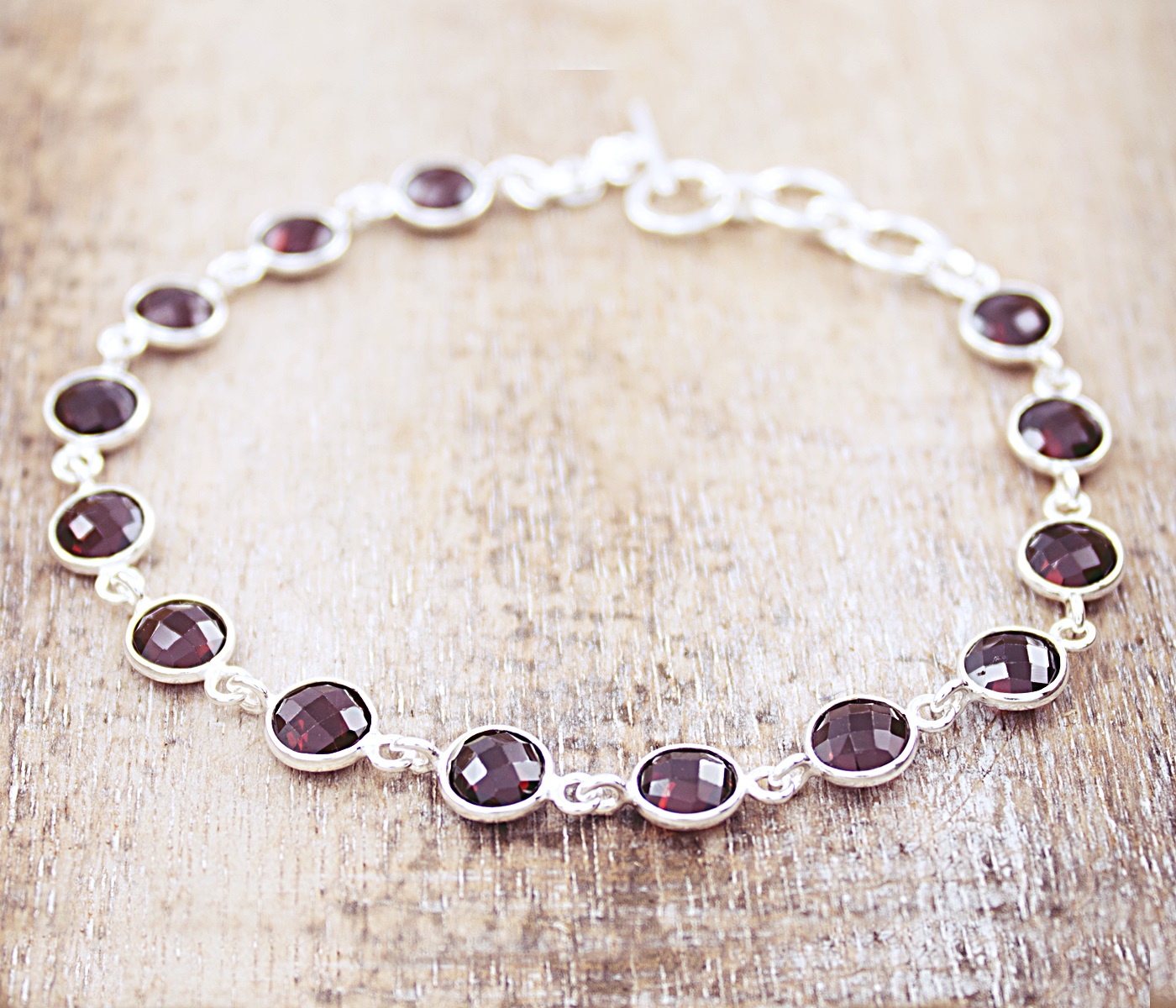 Silberarmband mit runden, facettierten Granat Steinen