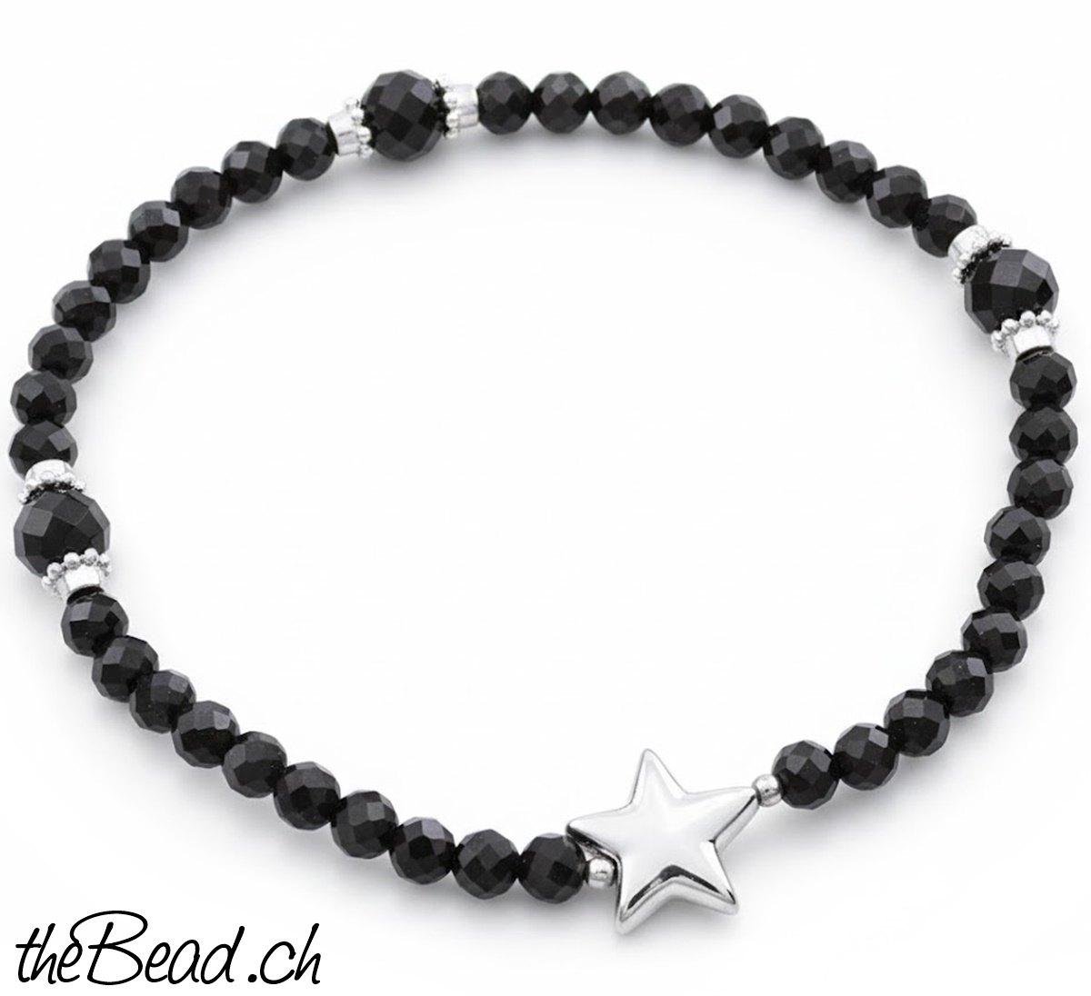 Facettiertes ONYX Armband mit einem STERN und weiteren kleinen Silberelementen