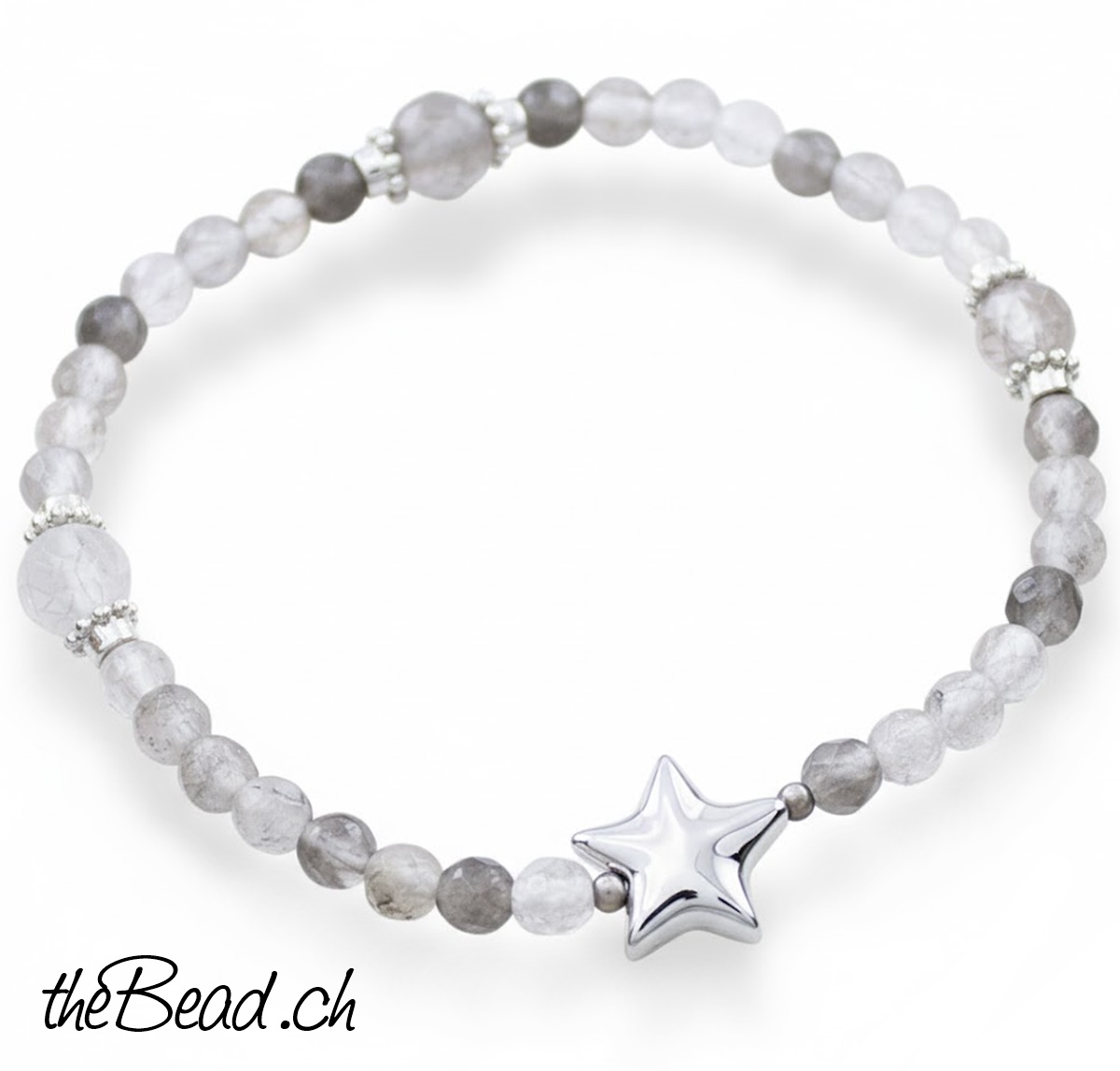 Facettiertes SILBERQUARZ Armband mit einem STERN und weiteren kleinen Silberelementen