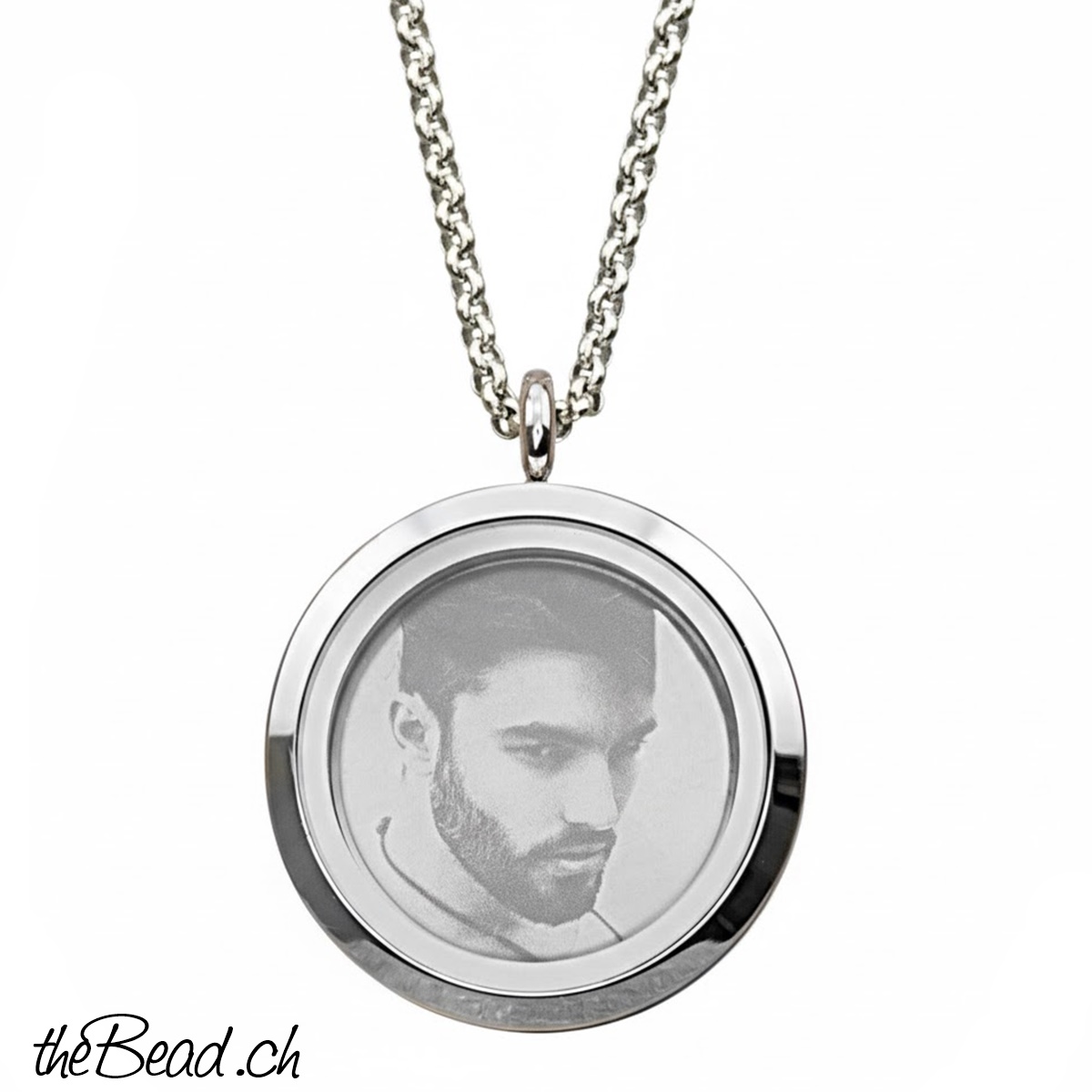Mit diesem speziellen Halsschmuck haben Sie Ihr Lieblingsfoto immer bei sich. Wir gravieren Ihr Foto, z.Bsp.mit Ihrem Liebsten/ der Liebsten, Ihr Baby, die Kinder, Oma, mit der besten Freundin, Haustier uvm.