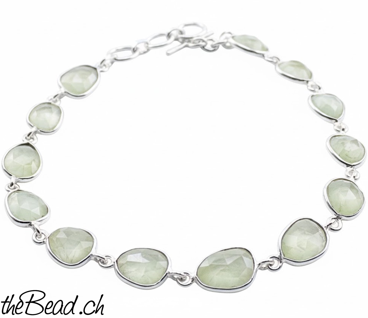 Die Prehnit Steine sind in Silber eingefasst, wunderbarer Armschmuck und auch eine schöne Geschenkidee!