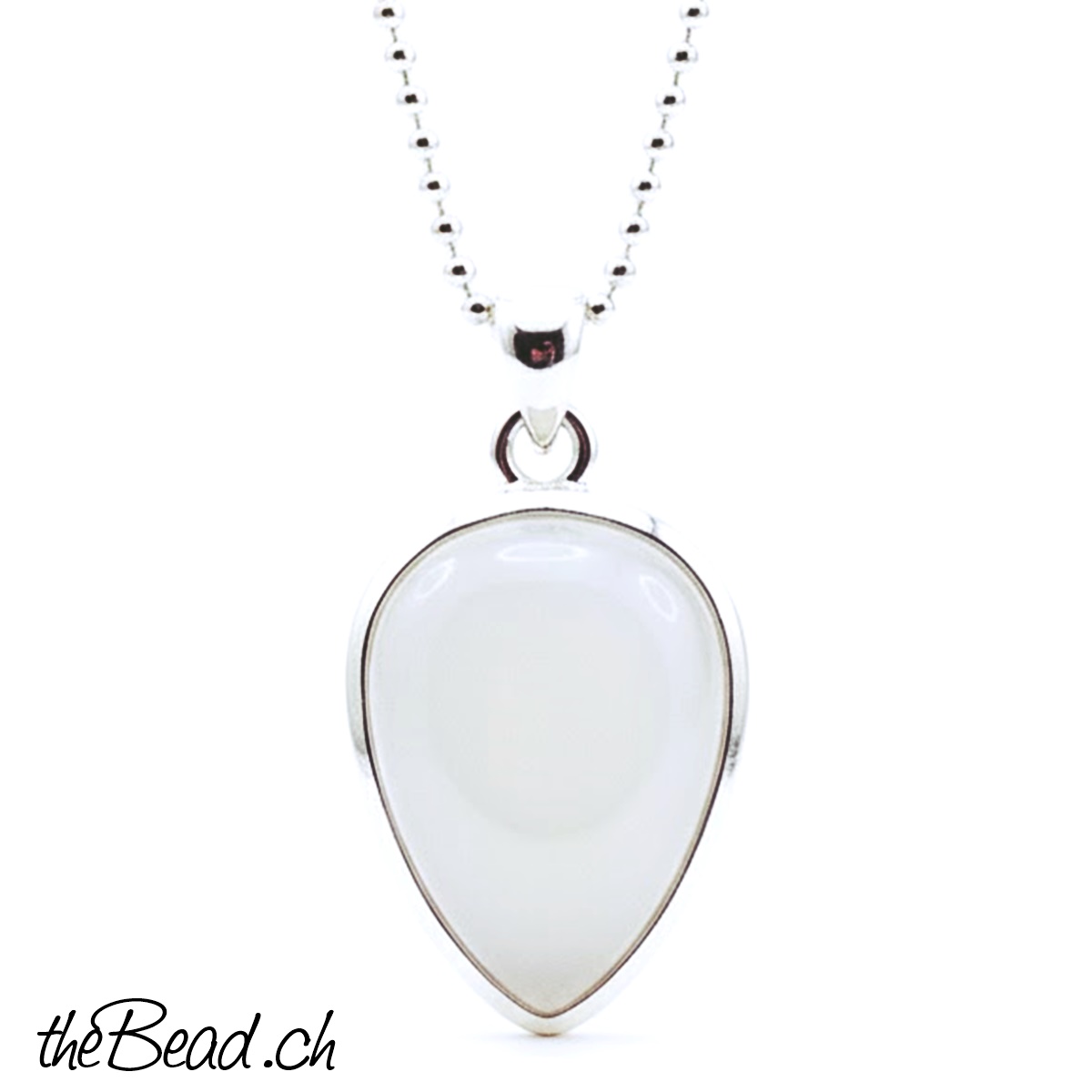 Toller Silberschmuck - Silberhalskette mit weissem Mondstein Anhänger, d
