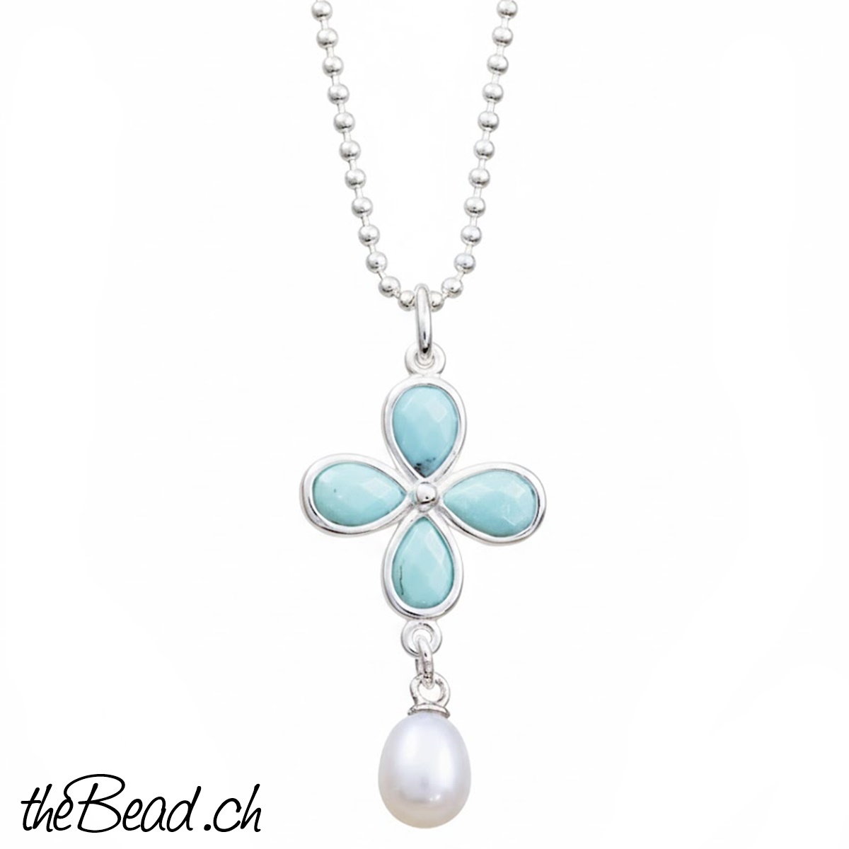 * schöne Geschenkidee * Dieser Silberschmuck besteht aus einer Silberhalskette sowie einem Anhänger mit Türkis und kleinem Perlchen Anhänger. Die Länge der Halskette ist wählbar Grösse des Anhängers: 35 x 15 mm Material: Silber 925 Sterling, Türkis, Süsswasserperlen die passenden Ohrhänger finden Sie HIER (solange Vorrat)