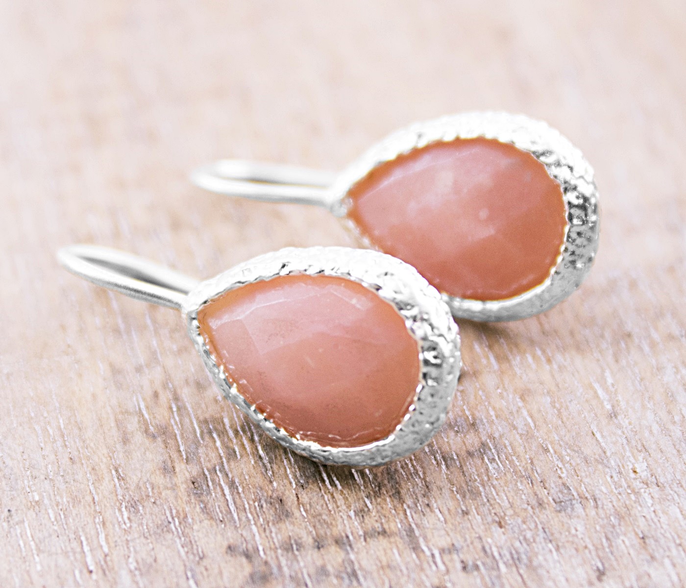 Ohrringe mit facettiertem rosa Andenopal, auch die Fassung der Steine ist hübsch ausgearbeitet