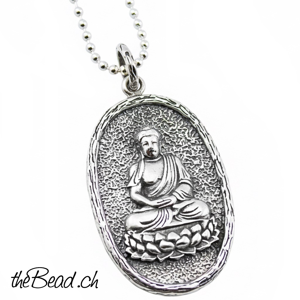 Dieses Silbercollier besteht aus einer Silberkette und einem schönen Silber Buddha Anhänger.