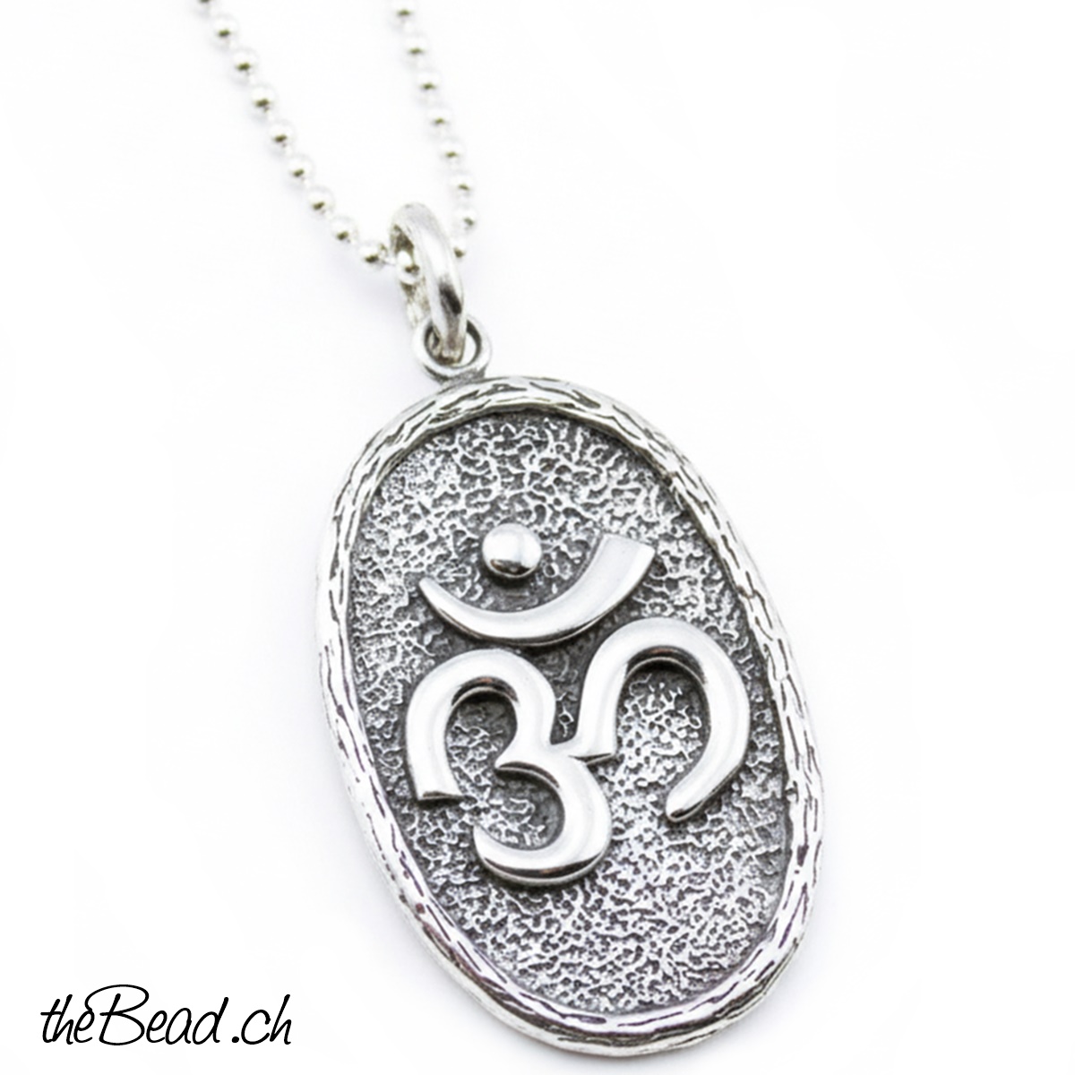 Dieses Silbercollier besteht aus einer Silberkette und einem schönen Silber OM Anhänger.