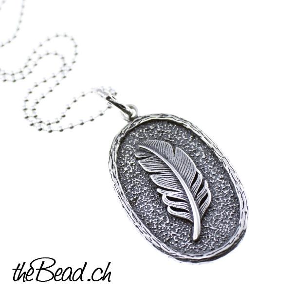 Dieses Silbercollier besteht aus einer Silberkette und einem schönen Silber FEDER Anhänger.