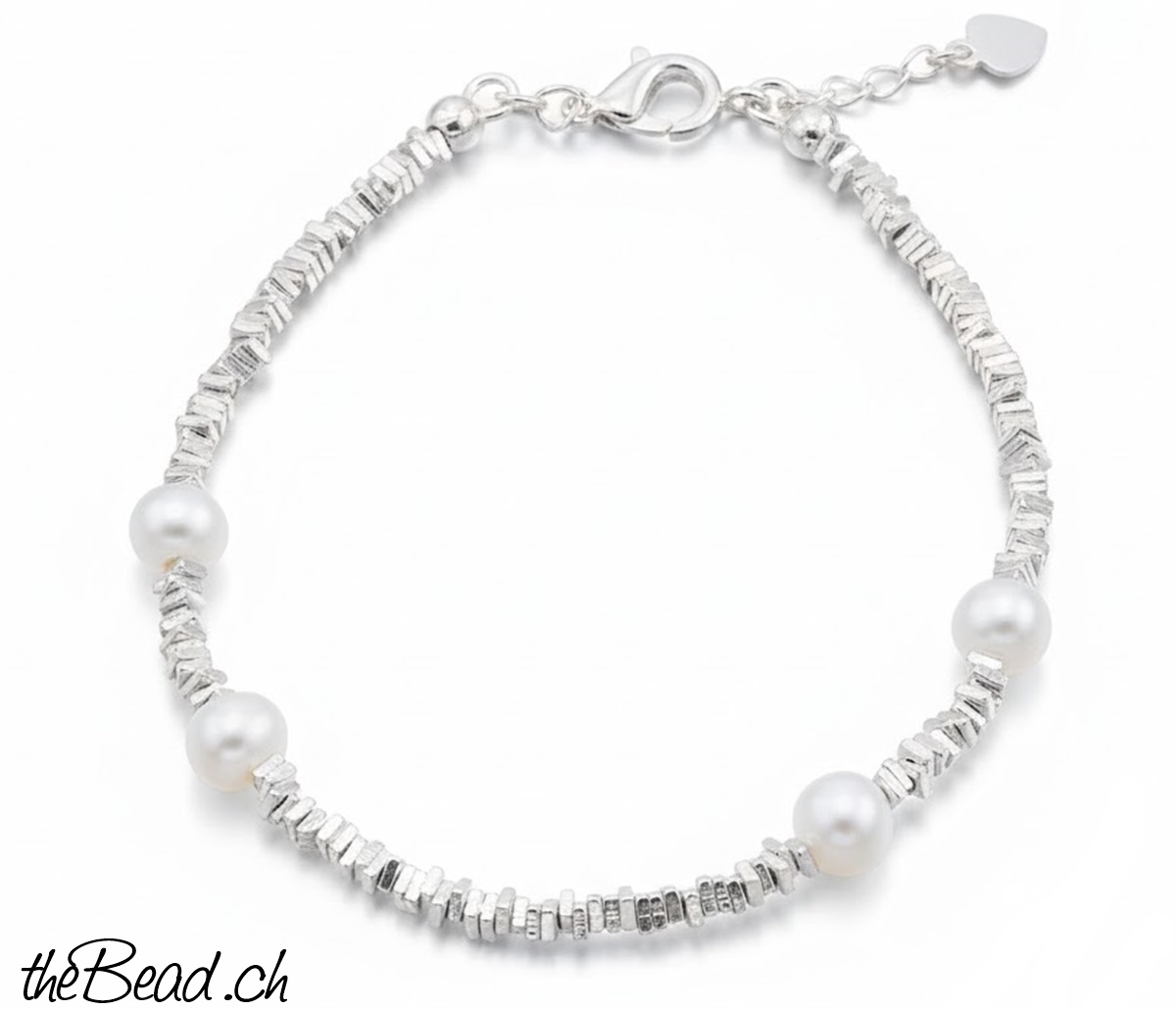Dieses Silberarmband besteht 925 Sterling Silber und vier Süsswasserperlen. Armbandlänge: 17 cm + 2 cm Verlängerungskettchen Material: Silber 925 Sterling, Süsswasserperlen