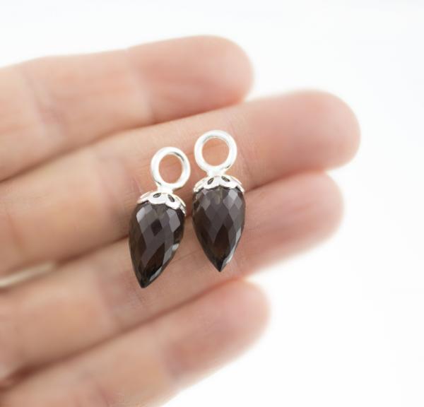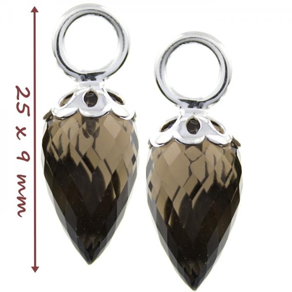 Sie erhalten zwei wunderbar facettierte Rauchquarz Anhänger passend für alle unsere MIA Creolen, die Anhänger können aber auch in eine Kette eingehängt werden. Material: Silber 925 Sterling , Rauchquarz Grösse: je Anhänger 25 mm lang die passende Creolen finden Sie HIER die passende Halskette finden Sie HIER