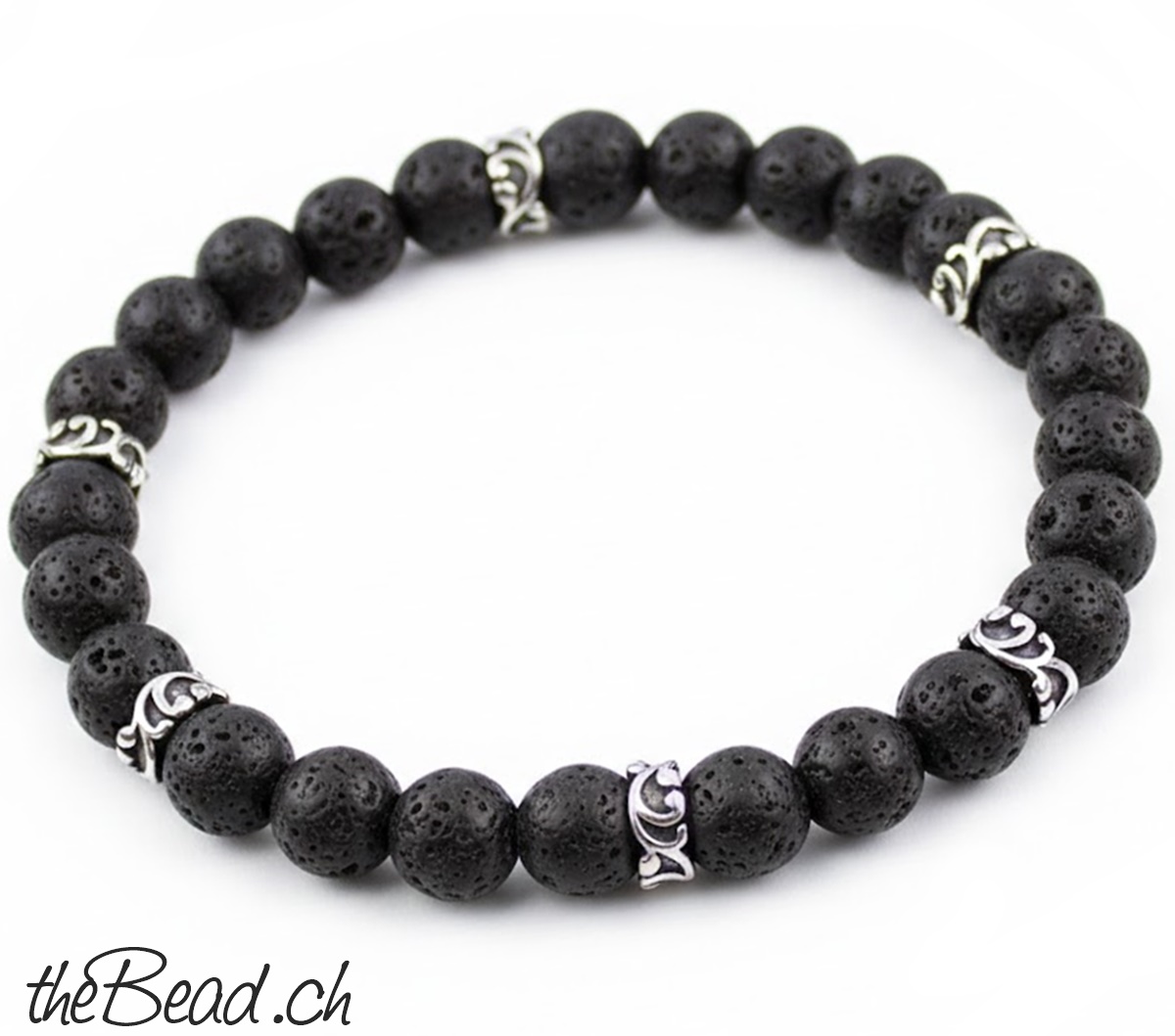 Die Lava Kugeln und Edelstahl-Elemente sind auf ein elastisches Band aufgezogen und daher sehr bequem zu tragen.