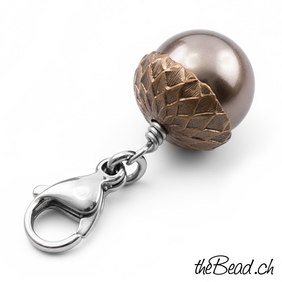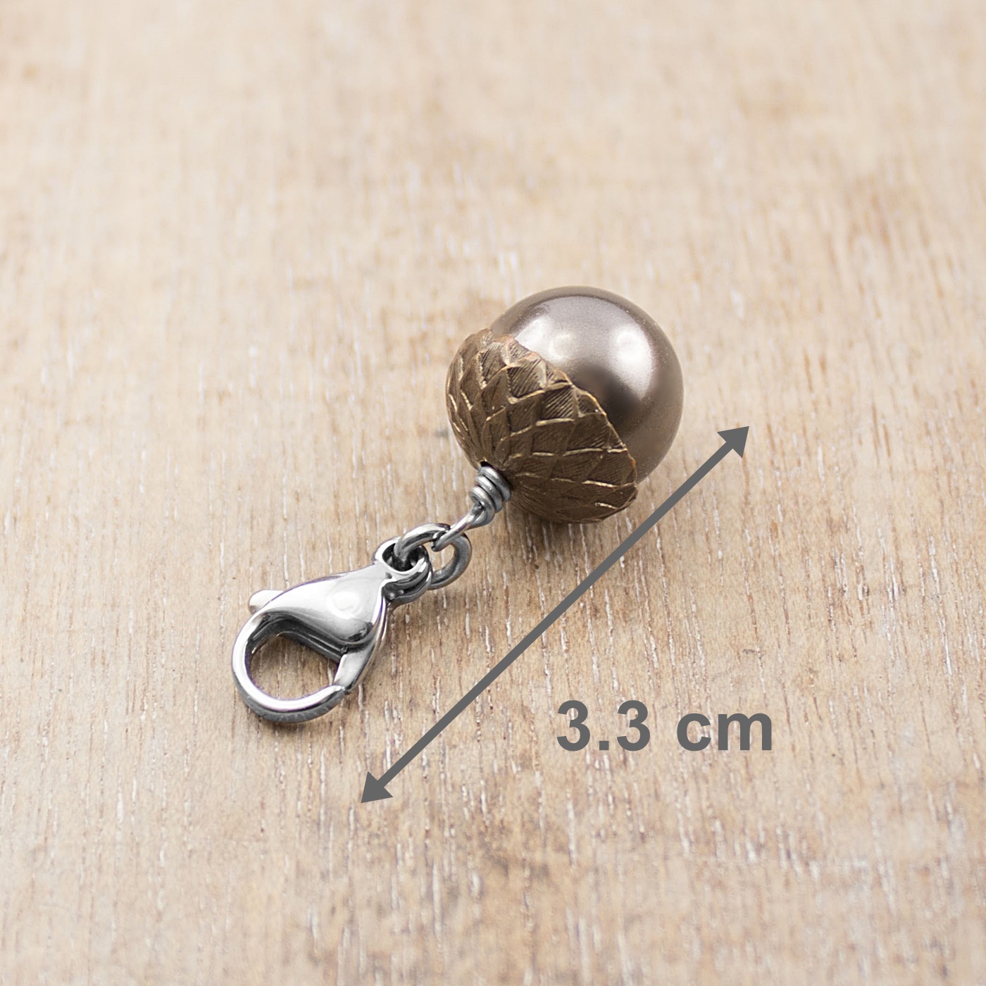 Süsser Charm in Form einer Eichel, mit dunkelbrauner Schmuckperle