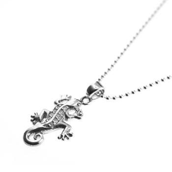 Dieses Silbercollier besteht aus einer Silberkette und einem Gecko aus Silber Die Kettenlänge ist wählbar.