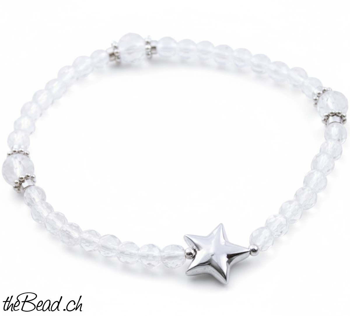 Facettiertes BERGKRISTALL Armband mit einem STERN und weiteren kleinen Silberelementen