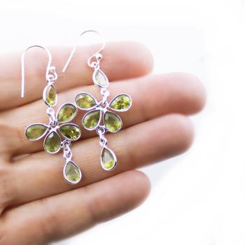 Die Ohrhänger bestehen aus Silber und vielen Peridot Steinen, wunderbar verspielter und auffälliger Ohrschmuck.