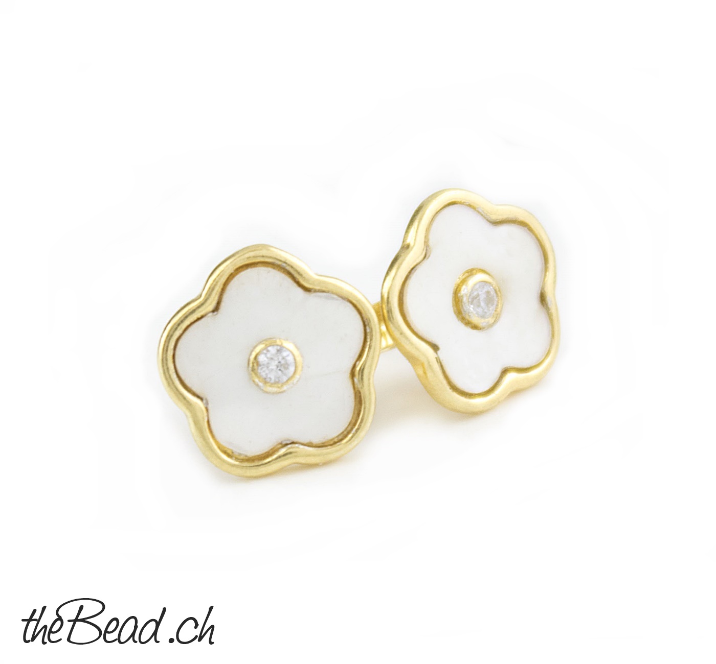 Diese süssen kleinen Ohrstecker bestehen aus vergoldetem Silber, schimmernden Perlmutt und einen Zirkonia in der Mitte des Ohrsteckers