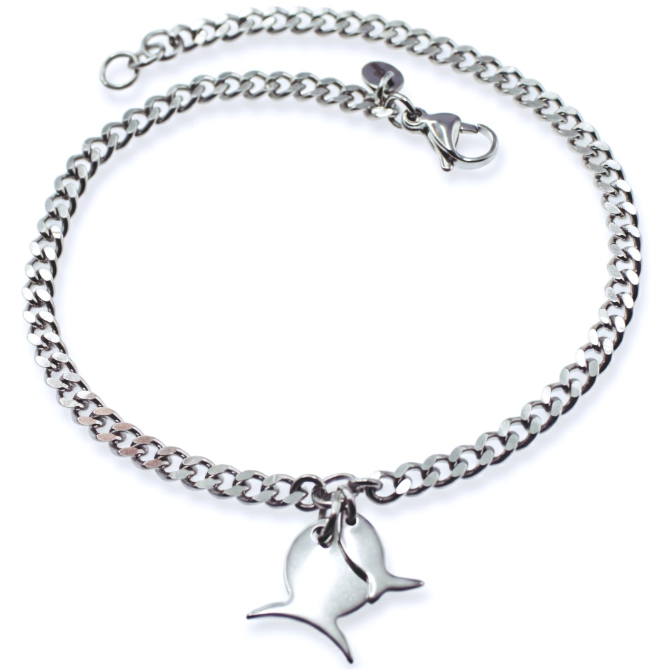 4.5 mm breites Edelstahl FUSSKETTCHEN mit zwei FISCH Anhängern