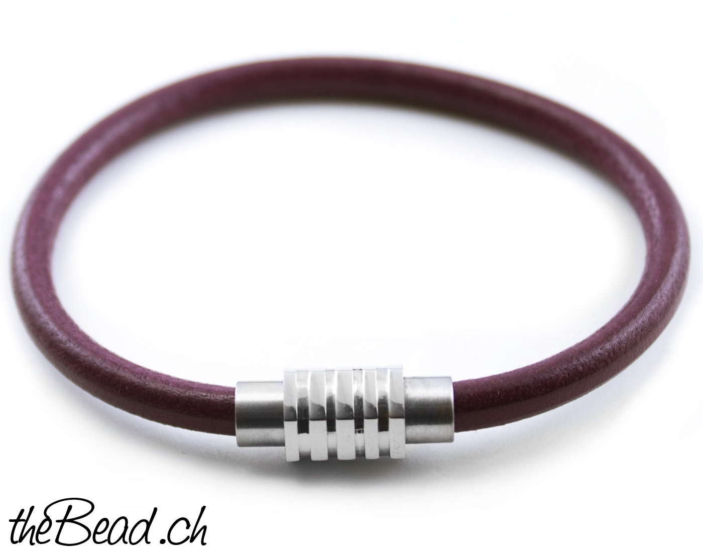 5 mm Lederarmband BORDEAUX mit Magnetverschluss