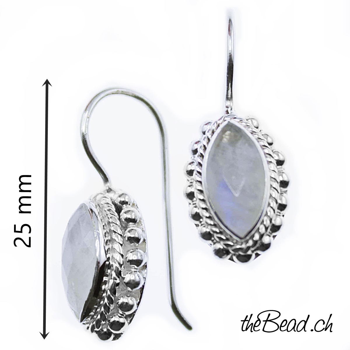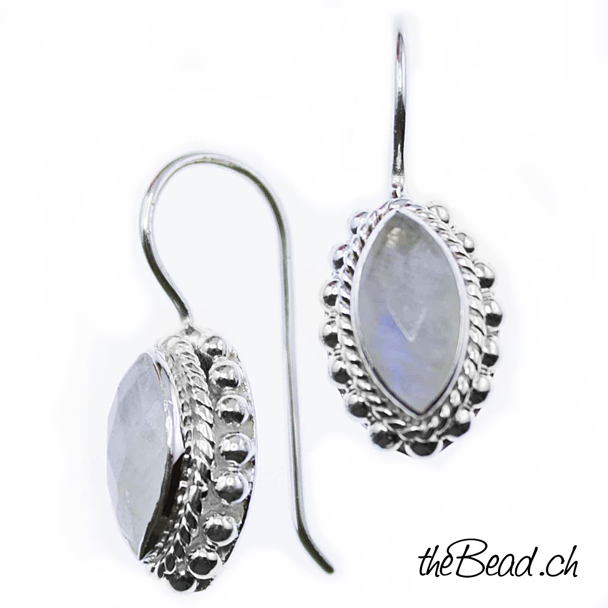 Die Regenbogenmondsteine sind wunderschön in Silber eingefasst, die Fassung wird mit einem zuckersüssen Pünktchenrand gesäumt. Die Steine sind facettiert / geschliffen und funkeln in einem herrlichen Lichtspiel