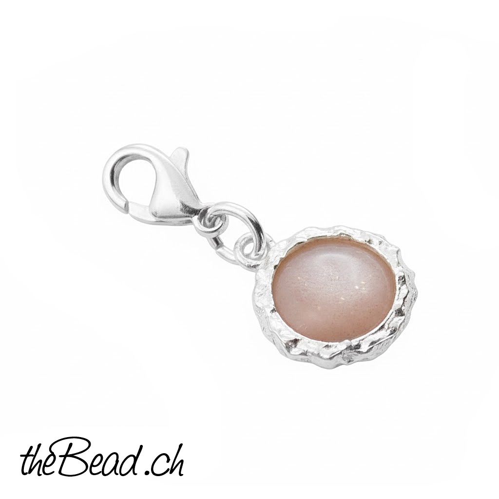 Silber Charm mit orangem MONDSTEIN
