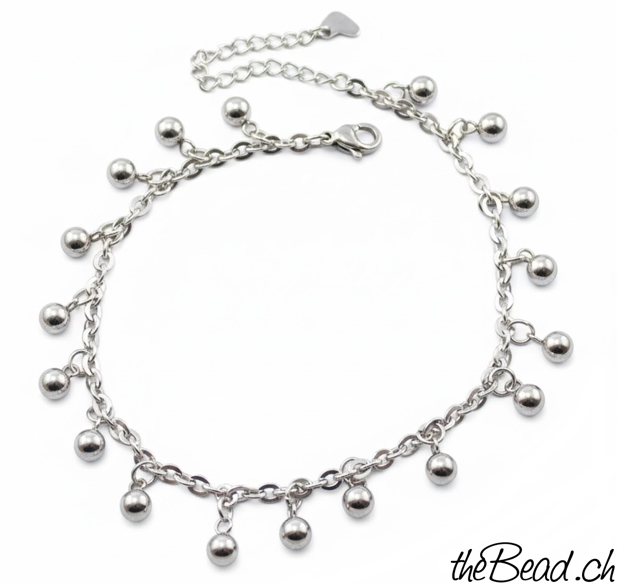 Edelstahl - Fusskettchen mit vielen Kügelchen Anhängern