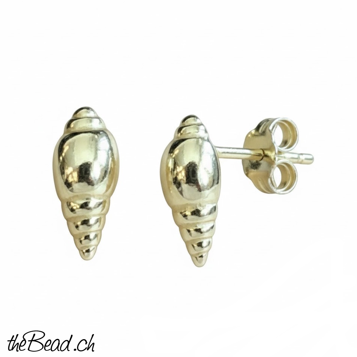 kleine Ohrstecker in Form einer Muschel, aus gelbgold vergoldetem Silber gearbeitet