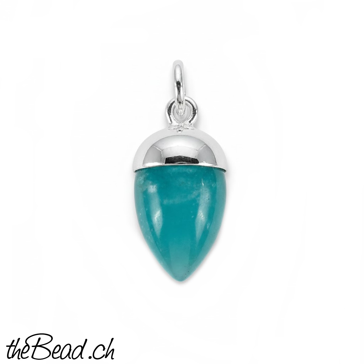 Der Anhänger besteht aus einem Amazonitstein und Silber