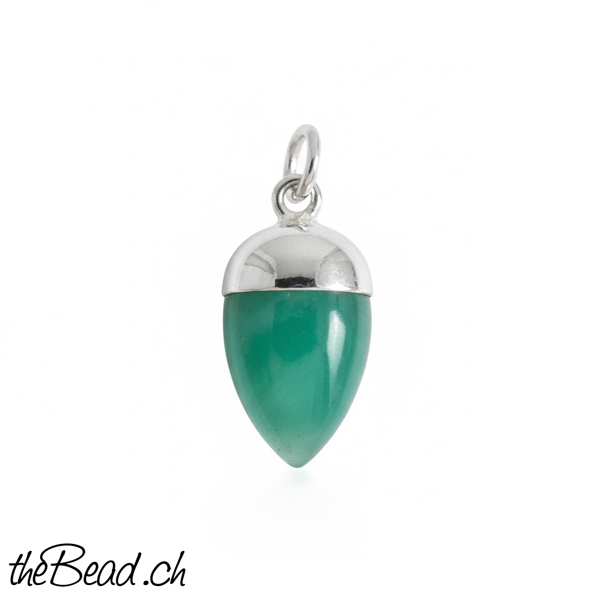 kleiner Chrysopras Anhänger mit Silberkäppchen