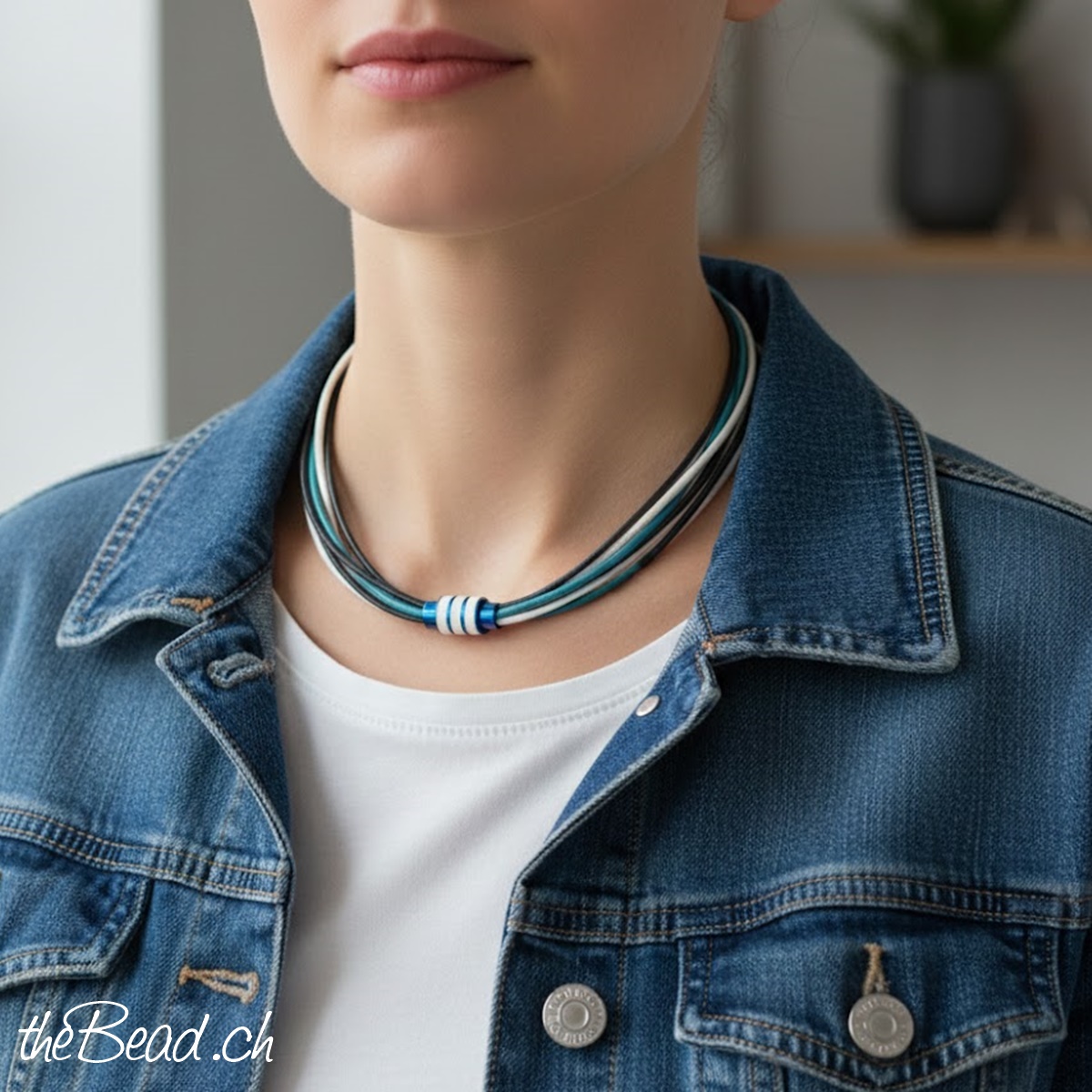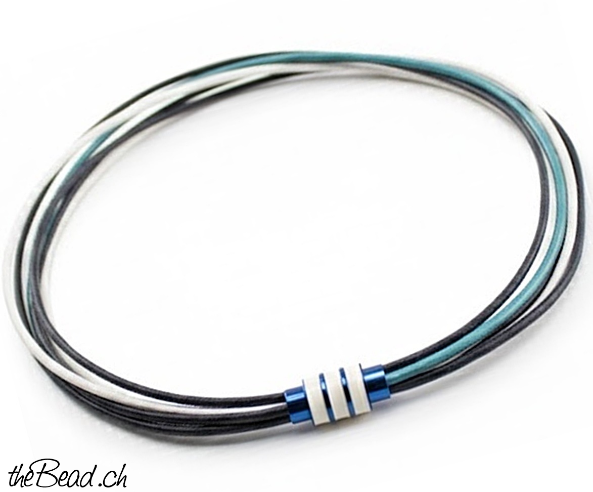 Die Halskette besteht aus Lederbändern in verschiedenen Farben und wird mit einem praktischem Magnetverschluss geöffnet/geschlossen. Die Länge der Lederkette ist in 40, 42, 45 oder 50 cm wählar.