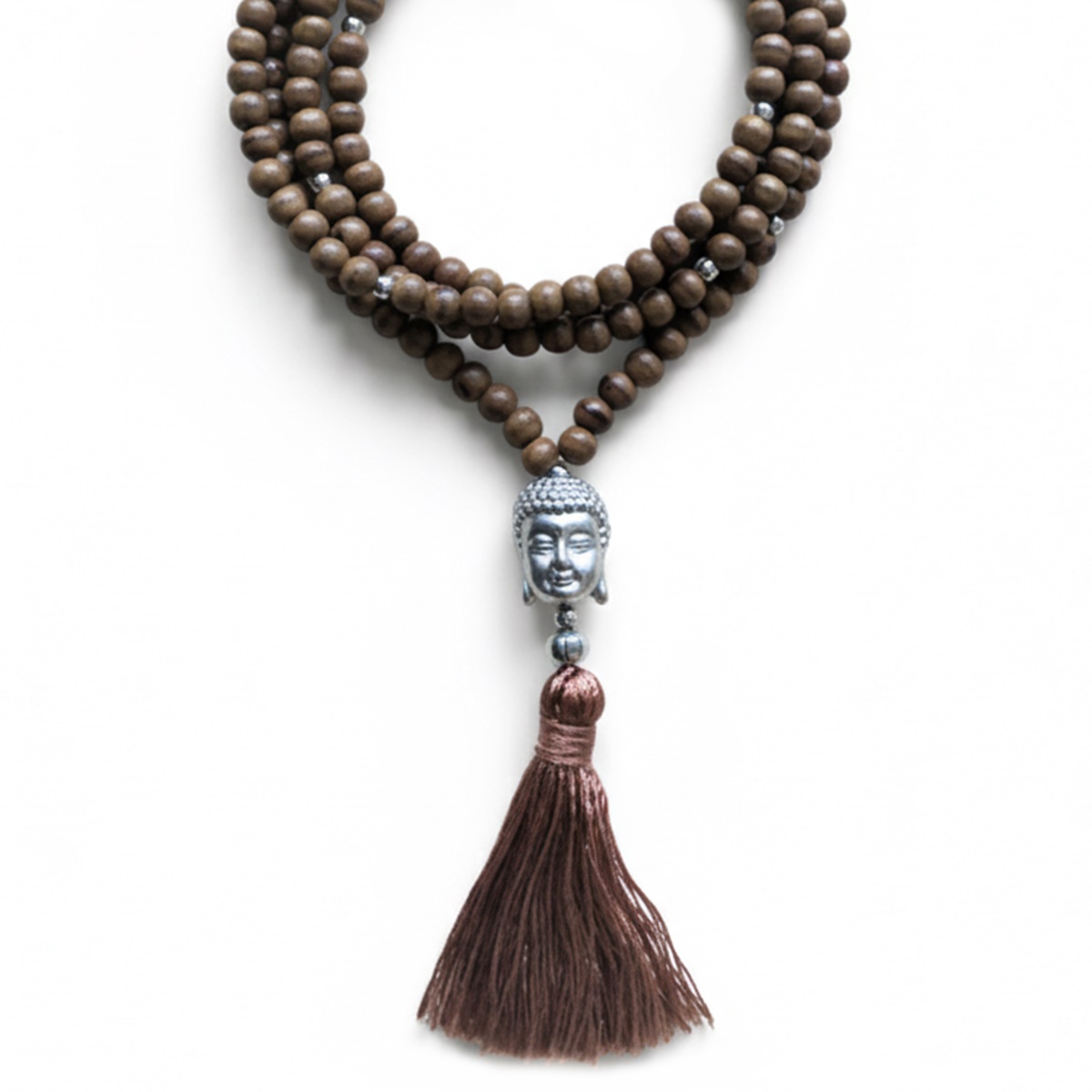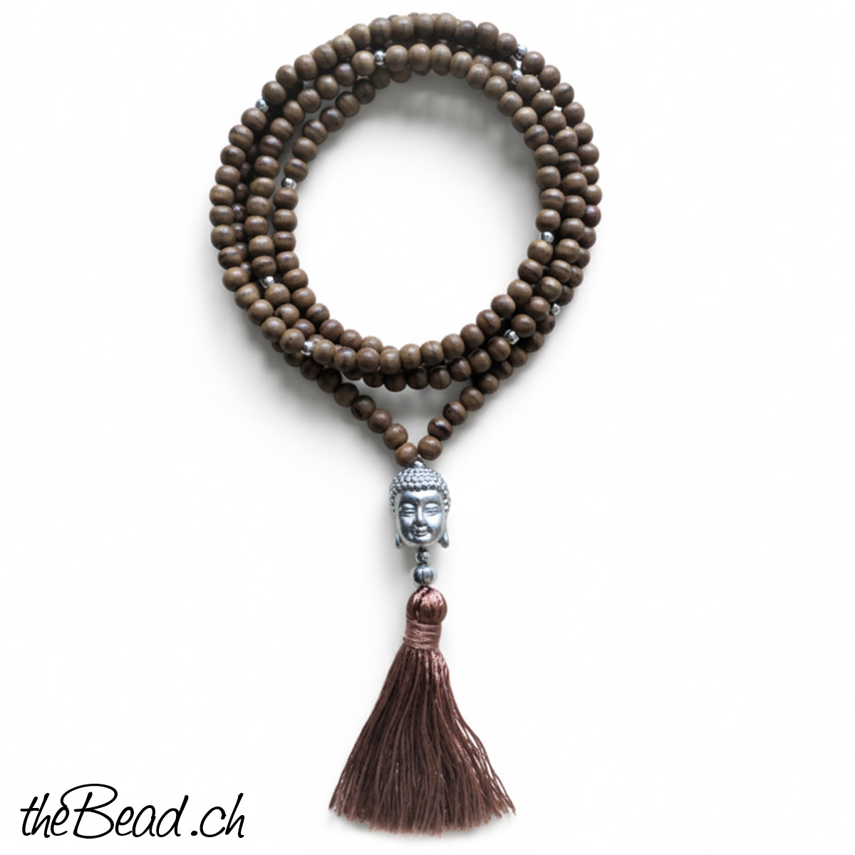 Dieses Holzperlenkette besteht aus Holzperlen die mit Silberperlen aufgefädelt sind, dazu ein BUDDHA ( auch Echtsilber ) mit passendem Quasten Anhänger