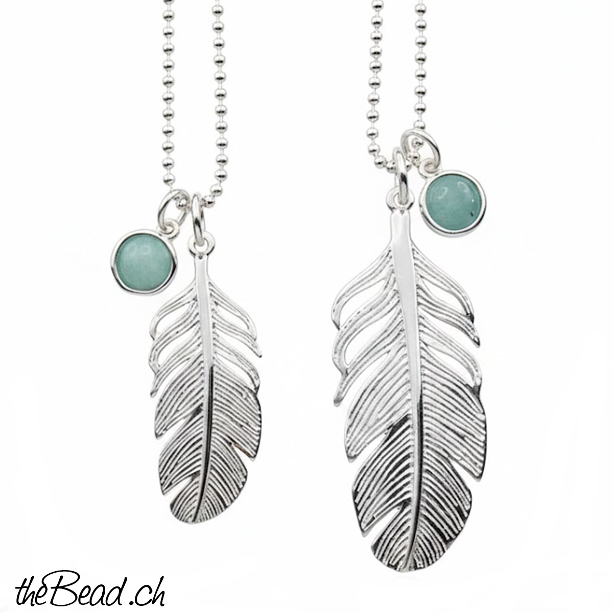 Im Gesamtpreis sind beide Halsketten mit FEDER Anhänger und Steinanhängerchen enthalten.Die Kettenlänge ist wählbar, ebenso die Farbe Steinanhängerchen (sh. Foto)