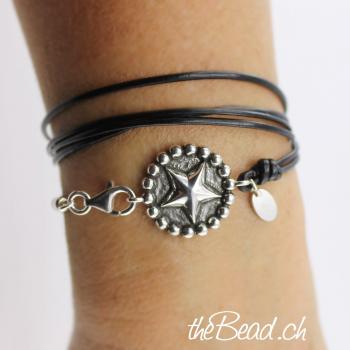Lederarmband mit hochwertigem Silber - Stern Verschluss