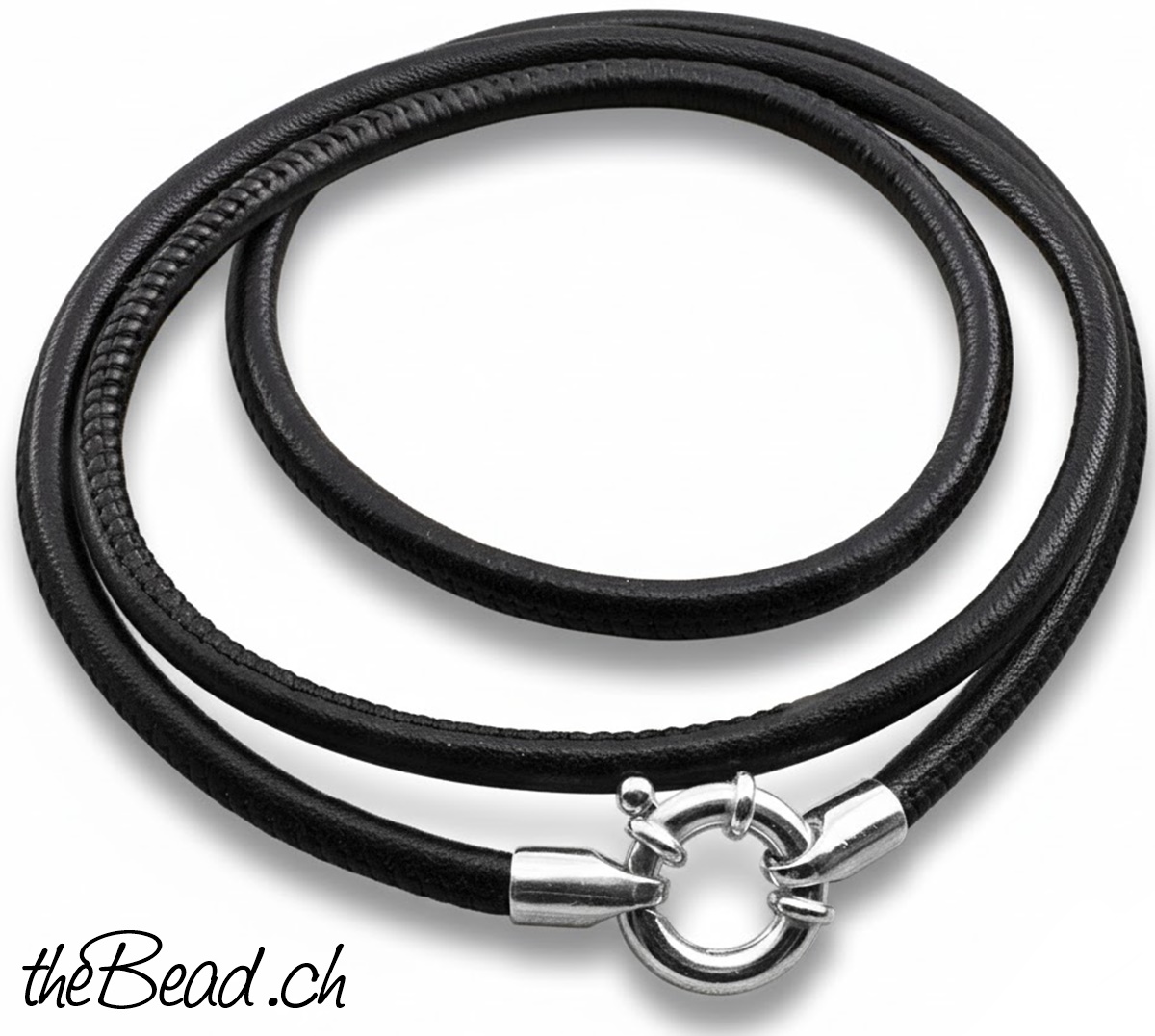 Die Lederhalskette ist aus weichem Glattleder / Nappaleder gearbeitet und mit dem Silberverschluss auch Ideal zum Einhängen von Anhängern geeignet