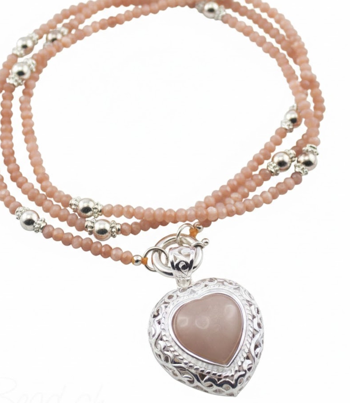 wunderschöne Halskette mit Herz Anhänger aus Mondstein